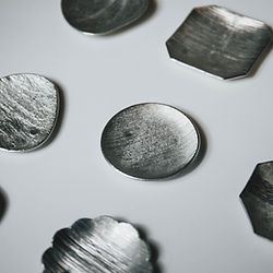 透過錫片鍛敲,學員將製作一件小皿。課程著重於金屬表面紋理與光澤變化的呈現,讓學員體驗到錫工藝的獨特魅力